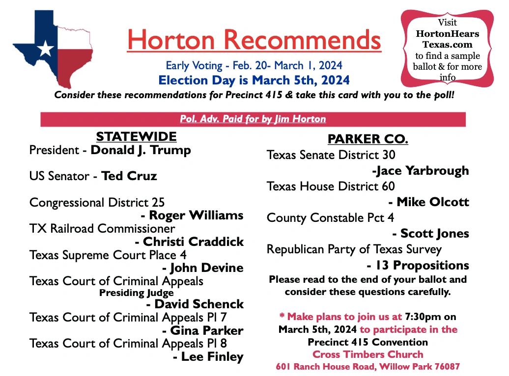 True Texas Project will never tell you how to vote! We will, however, provide input for you to add to your own additional research.